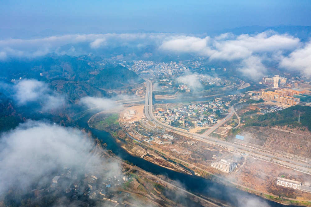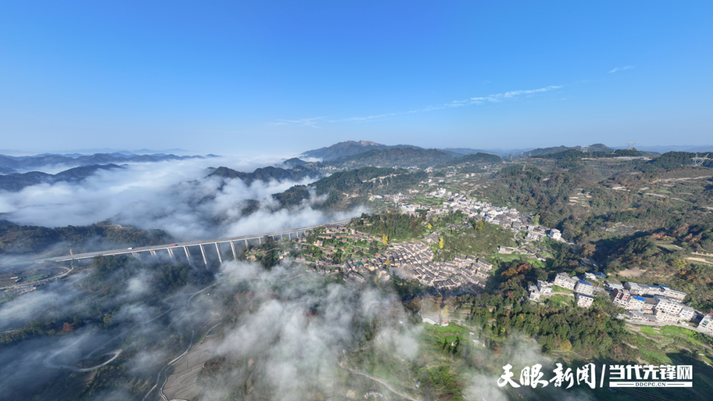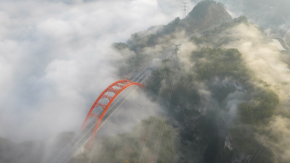 貴州施秉:江凱河大橋云霧繚繞景色美