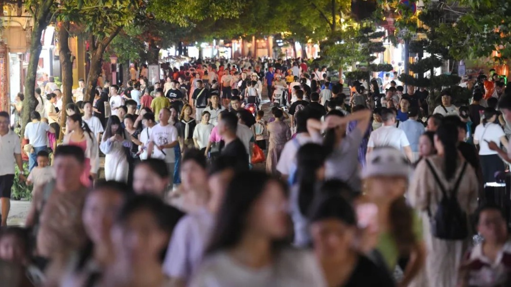 乘船夜游?陽河已久負盛名。河面上,水霧縈繞,霓虹閃爍。兩岸楊柳依依,斗拱飛檐的民居紅燈高照,倒映水中,如夢如幻。游客乘坐畫舫,在河中穿梭,如同畫中游覽。