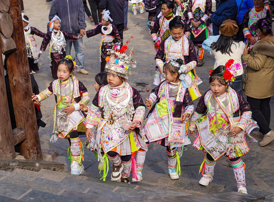 12月8日,從江縣丙妹鎮岜沙苗寨迎來了一年一度的傳統蘆笙節,當地苗族群眾身著節日盛裝,歡聚蘆笙堂舉行蘆笙比響活動,慶祝傳統佳節。