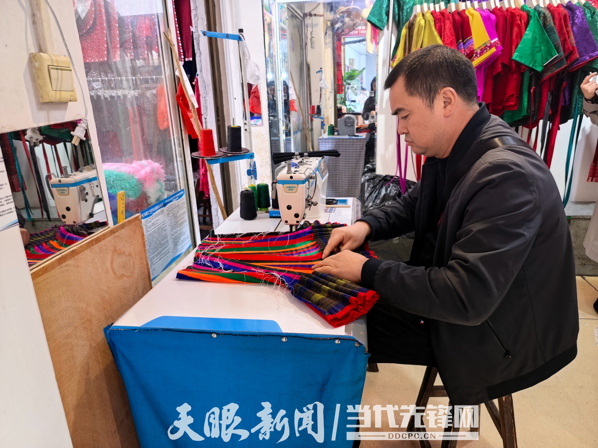 這里的物件從不是冰冷的商品。一頂檐帽,能為日常穿搭添一抹亮色;一枚繡花發簪,能讓純色衣裙煥發神采;一條苗繡腰帶,能提亮整套苗族服飾。老人們坐在店鋪門前,看著往來行人,偶爾指點著某件繡品的針法,眼里是對過往的懷念;年輕店主則試著將繡片做成時尚配飾,讓傳統技藝融入現代生活。